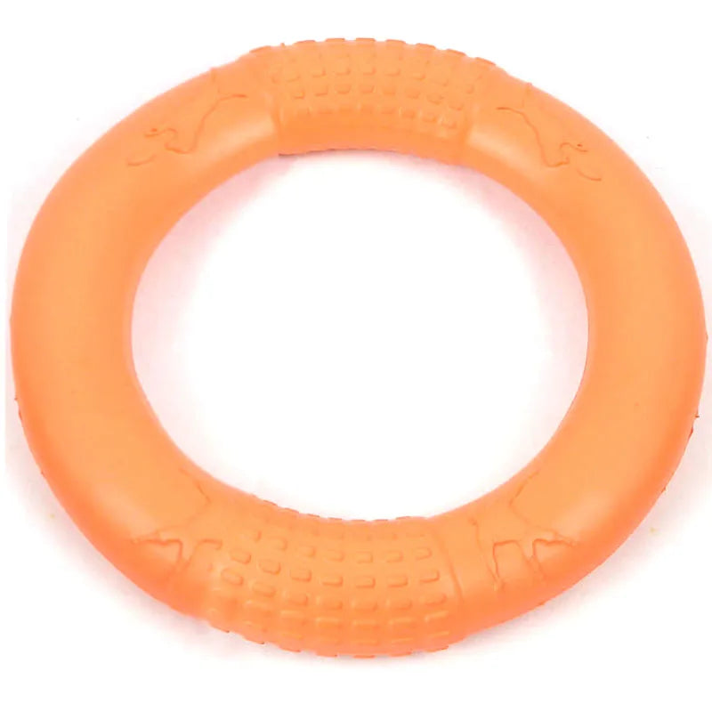 description: Product name: EVA pet pull ring Product size: large diameter about 17cm Product material: plastic Product color: orange, red, green 1. Reduce stress and relieve boredom 2. Improve pet IQ 3. Enhance the relationship between man and dog 4. Protect your dog's health